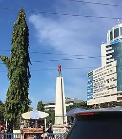 The Uhuru Monument (also known as Uhuru Torch Monument) is a landmark monument and tourist attraction located in Mchafukoge ward of Ilala District in Dar es Salaam Region, Tanzania.[1] It is a white obelisk with a replica of the Uhuru Torch mounted at its top.[2] It is located at the Mnazi Mmoja Park in the city centre and is partly fenced.[3]