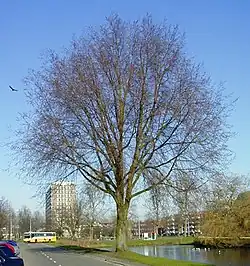Owing to its resistance to the original strain of Dutch elm disease, 'Vegeta' was planted in large numbers across Amsterdam after the Second World War as a replacement for 'Belgica' (Belgian Elm), but was itself eventually replaced by the Dutch cultivar 'Dodoens' following the arrival of the more lethal strain of DED in the early 1970s.[28]