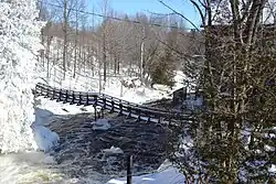 - 4.9 kilometres (3.0 mi) north-east, then north-west, crossing the "Melbourne Valley", to route 116 and the road iron, which the current crosses at 4.6 kilometres (2.9 mi) west of the New Bridge at Richmond.