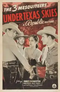 Under Texas Skies is a 1940 American Western "Three Mesquiteers" B-movie[1] directed by George Sherman and starring Robert Livingston, Bob Steele, and Rufe Davis, in his first film of the series. It was produced and released by Republic Pictures.