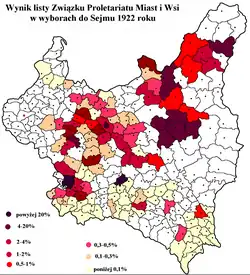 The Union of Town and Country Proletariat (Polish: Związek Proletariatu Miast i Wsi, abbreviated ZPMiW, Ukrainian: Союз пролетарату міст і сіл, abbreviated СПМіС, Yiddish: פֿארבאנד פון די פּראלעטאריאט פון שטאט און לאנד) was a political organization in the Second Polish Republic. ZPMiW was founded in August 1922, initially mainly as a platform for the Communist Workers Party of Poland (KPRP) to contest the 1922 elections.[1][2] The organization was led by a Central Electoral Committee, with Stanisław Łańcucki as its chairman, Jakub Dutlinger as its secretary and Szczepan Rybacki serving as its vice chairman and treasurer.[2][3]