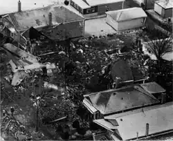 The three-person flight-deck crew died, along with 40 of the 55 passengers.[1]: 4  The accident destroyed five houses and damaged three others,[1]: 5  killing two people on the ground.[1]: 4  Survivors credited the heroic actions of the flight attendant who called out to survivors to exit through a hole in the rear of the plane.[12]