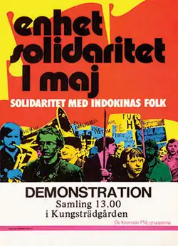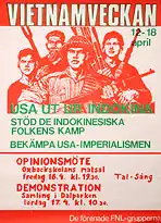 DFFG became one of the most successful Swedish popular movements in later years, the organization was able to mobilize thousands of young people to demonstrations, street sales of Vietnambulletinen (the publication of DFFG), leafletings, fund collections, etc.[2] DFFG came to dominate Swedish public debate about the Vietnam War during several years.[3] Jan Myrdal played a prominent role for the DFFG, but was a never a member of the board.[4]