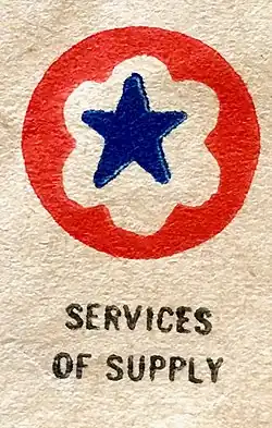 The Services of Supply or "SOS" branch of the Army of the USA was created on 28 February 1942 by Executive Order Number 9082 "Reorganizing the Army and the War Department" and War Department Circular No. 59, dated 2 March 1942. Services of Supply became one of the three autonomous components of the Army of the United States on 9 March 1942.[1] It was renamed the Army Service Forces on 12 March 1943, as it was felt that the term "supply" did not accurately describe its broad range of activities. From the day of inception (and even before) in 1942 through the end of WWII, the SOS/ASF was commanded by Lieutenant General (later General) Brehon B. Somervell.