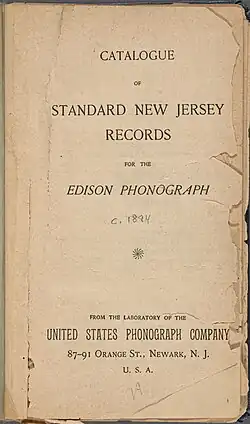 2. ^ Catalogue of Standard New Jersey Records. Newark, N.J.: United States Phonograph Co. c. 1894.