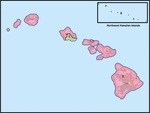 Map of Hawaii's two congressional districts for the United States House of Representatives since 2022