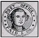 In the Act of March 3, 1845, the United States Congress standardized postal rates throughout the nation at 5¢ for a normal-weight letter transported up to 300 miles and 10¢ for a letter transported between 300 and 3,000 miles, with these rates to take effect on July 1, 1845.[1]