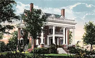 As the university grew, more buildings were constructed on campus and a trolley system was built to connect the growing university to downtown Grand Forks. However, there were several major interruptions in the life of the university. In 1918, UND was the country's hardest-hit single institution by the flu epidemic that killed 1,400 people in North Dakota alone.[14] Later that year, classes were suspended so the campus could become an army base for soldiers during World War I.[14] During the Great Depression, UND provided free housing to students willing to do manual labor on campus.[15] "Camp Depression," as it was called, consisted of railroad cabooses that each housed eight male students.[15] "Camp Depression" students did not get regular meals from the cafeteria and had to be satisfied with free leftovers. However, Grand Forks citizens often opened their homes and kitchen tables to many of these young men.[15]