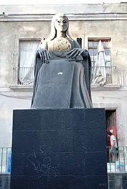 This convent is best known for having been the home of Sor Juana Inés de la Cruz for over 27 years. The tombstone that supposedly covers her grave in the lower choir is more of a tribute than a real grave.[5] The nun, called the "Tenth Muse" in Mexico, wrote most of her works here.[2]
