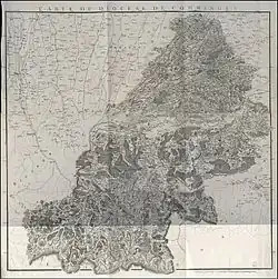 During the 1560s, the bishop of Comminges was Pierre d'Albret. He struggled in his diocese, suspicious to both the French monarchy and the Spanish crown. His own flock attacked him in his residence in Saint-Bertrand.[9] He resisted the prospect of conversion to Protestantism that his niece, the queen of Navarre Jeanne desired for him and her supporters chased him from the diocese. With the see vacant, it was preyed upon by the Spanish bishop of Urgell who sought to annex the Val d'Aran, a cross border component of the bishopric. There was a strong desire in Aran to remain within the bishopric of Comminges.[10] Through the two archpriests of Aran, the diocese held a presence inside Spain. Comminges at large was a firmly Catholic territory, wedged between the Albret lands of Béarn and Foix. Indeed, the Albret enjoyed suzerainty over several territories inside the comté de Comminges (the baronnie d'Aspet, Larboust and Nébouzan). Despite this Protestantism made little headway in Comminges.[11]