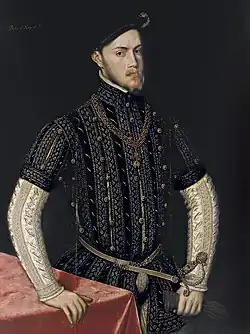 In 1579, the bishop of Comminges undertook an extraordinary diplomatic mission to Portugal and he travelled to Lisbon to this end.[28] Alongside him for the conduct of this mission was the royal favourite the marquis de Beauvais-Nangis.[1][29] The queen mother Catherine had recommended him to the king for this mission as a 'prelate of the church and a man of letters'.[5] His was not the only extraordinary diplomatic posting to Portugal in 1579, and the sécretaire (secretary) to the Spanish ambassador the baron de Saint-Gouard, the sieur de Longlée also undertook a mission in this year.[30] According to Carpi and Lhoumeau the purpose of the bishop's mission was to defend Catherine's rights as concerned the prospect of succession to the Portuguese throne.[31] This was through her descent from king Afonso III who had died in 1279.[32] According to the historian Le Roux the purpose of his mission was to advocate for the rights of the prior do Crato (prior of Crato), an illegitimate grandson of the Portuguese king Manuel and thus nephew of the current childless king.[33] Either way the bishop of Comminges' mission was not a success.[32] Brunet speculates that the bishop of Comminges' half brother, the seigneur de Lanssac might have had a role to play in the failure of his mission.[34] Lanssac had adopted an attitude that appeared contrary to Catherine's interests in favour of the Spanish king Felipe.[21]