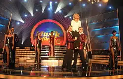 Almost at once she went on went on to extend her media experience, with television appearances during 1989 on East German programmes such as the shows "Feuerabend" and "Sprungbrett".[6] Awards followed quickly, including both a so-called "Silver Bong" prize and the audience award at the 1990 International Schlager Festival in Moscow.[3][5] Over the years that followed she made numerous further appearances performed on schlager shows on public service television channels across Germany, especially (though not exclusively) those transmitted during the peak-viewing Saturday evening slots. The shows in question included Lustige Musikanten, ZDF-Hitparade, Musikantenscheune and ZDF-Fernsehgarten. Bresan's television music career took off not just in the so-called "Neue Bundesländer" / "new federal states" (before 1990 the "German Democratic Republic" / "GDR"), but also in the western parts of Germany from which, during the first 24 years of Bresan's life, the "GDR" had been brutally separated.[7]