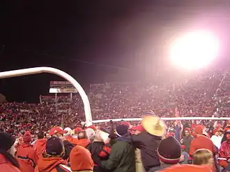 The program regressed further during the Jim Fassel era from 1985 to 1989, with a 25–33 record (.431).[10] His teams were marked by high scoring offenses and abysmal defenses. In 1989, his final season, the Utes scored 30.42 points per game, but allowed 43.67 points per game.[26] The lone bright spot of his tenure was a 57–28 upset of nationally ranked BYU to end the 1988 season, which was dubbed by Ute fans as The Rice Bowl.