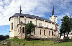 The town is known for the Church of Saint Wenceslaus, the largest church in the Upper Ore Mountains, popularly known as the Ore Mountains Cathedral.[6] It dominates the town and is visible on the southern slope of the mountains far into the Most Basin.[3]