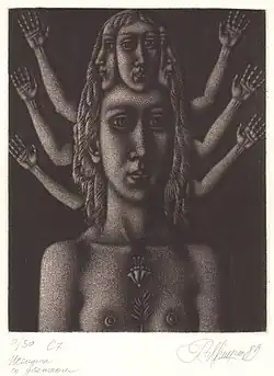 Woman with a flower. 1989, mezzotint