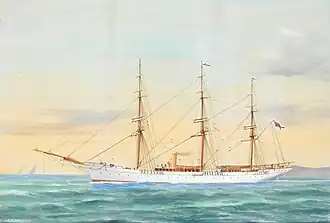 Her first owner was Capt. J. F. Laycock of Bawtry, Portsmouth, a British Army officer and Olympic sailor. Laycock, a member of the Royal Yacht Squadron at Cowes,[2] he commissioned Ramage & Ferguson of Leith in 1892 to build him a steel auxiliary three masted steam yacht. Laycock had envisioned his own private clipper ship, a three-quarter sized version of Cutty Sark. He drew up some basic outline plans, and handed them over to Mr. W. C. Storey, who produced detailed plans for both the yacht, and its auxiliary power unit. The design had its critics, but the ship was found to have excellent sailing qualities. She is believed by many to have been the finest example of a steam auxiliary ever built.[3]
