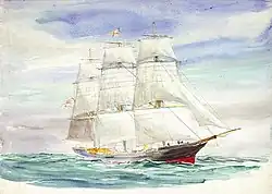 At some point her ownership was transferred to F. Baudoin, of Le Havre, France, and it was under her tenure that, while carrying oranges and wine from Valencia to Dunkirk, she foundered and was wrecked in a storm on 2 December 1921, off Cape St. Vincent.[23][24]