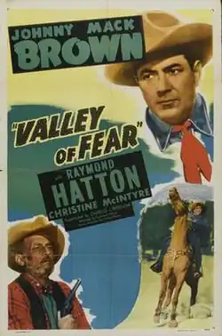 Valley of Fear is a 1947 American Western film directed by Lambert Hillyer and written by J. Benton Cheney. The film stars Johnny Mack Brown, Raymond Hatton, Christine McIntyre, Tris Coffin, Ed Cassidy and Eddie Parker. The film was released on February 15, 1947, by Monogram Pictures.[1][2][3]