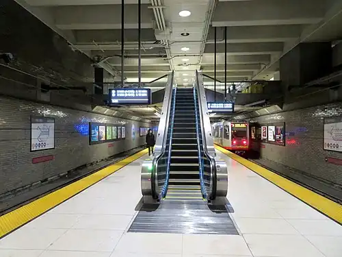 Van Ness station is an underground Muni Metro station on the Market Street subway at the intersection of Market Street and Van Ness Avenue (U.S. Route 101) in San Francisco, California. The station consists of a concourse mezzanine on the first floor down, and a single island platform on the second level down.