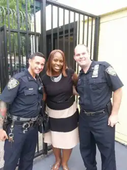 Gibson worked as chairperson to the council's public safety committee, which is among bodies charged with oversight of the New York Police Department (NYPD).[13] In the wake of public outrage over the deaths of civilians such as Eric Garner, she assured the public through various media outlets that she would rectify the NYPD transparency system and better equip officers for public service.[14] She worked with Mayor Bill de Blasio, Council Speaker Melissa Mark-Viverito, and the Civilian Complaint Review Board (CCRB) to implement the use of body worn cameras, GPS tracking devices for officers, and technological advancement funding for the NYPD.[13]
