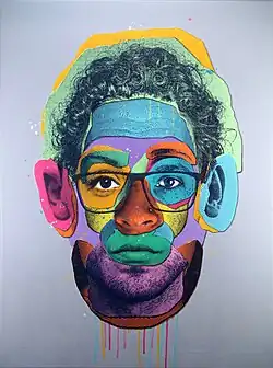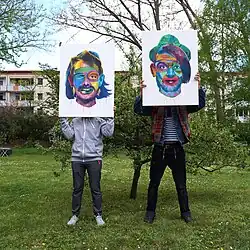 The artist duo deals with socially prominent themes such as work, migration, (sexual) identity, death, religion or the financial crisis. Various & Gould's work is influenced by (political) poster graphics, Dada and Pop Art. Characteristics are vivid colors combined with typography and encrypted messages .[3]