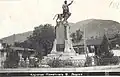 The Vasil Levski Monument stands in Vasil Levski Square in Karlovo, Bulgaria, between the churches of St. Nicholas and the Holy Mother. The foundation stone of the monument was laid on 15 May 1903, in front of prince regnant Ferdinand I. It was designed by the sculptor Marin Vasilev. The statue of Vasil Levski presents him with a revolver in his hand. By his side is a roaring lion, symbolising the nation of Bulgaria. In the lower part of the monument there is a list of Karlovo citizens, who died during the fight for Liberation of Bulgaria in July and August 1877. On the lower part of the pedestal there are three reliefs - "Creation of the revolutionary committee" („Създаване на революционен комитет“), "The arrest of Levski" („Залавянето на Левски“), and "Taking Karlovo's rebels from the konak" („Извеждане на карловски въстаници от конака“).[1][2]