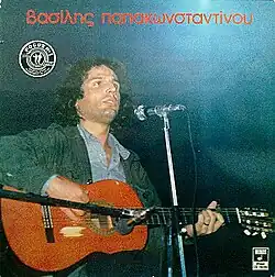 Vasilis Papakonstantinou is the eponymous debut album from Vasilis Papakonstantinou. It was recorded after his return from touring abroad as a singer for Mikis Theodorakis's tour. Most of the songs for the album are originals written by singer-songwriter Antonis Vardis (who also contributed most of the guitar work in the album) with lyrics by Panos Falaras. The album also includes the first attempt as a songwriter by the popular singer Haris Alexiou. The remaining songs are covers: two by Catalan singer-songwriter Lluis Llach with Greek lyrics by Falaras, a song by singer-songwriter Dionysis Savvopoulos (originally from his 1966 debut album To Fortigo) [1] A Thanos Mikroutsikos song (originally from his 1975 Politika tragoudia debut album), and a Mikis Theodorakis song (from his Arcadia II song cycle written in 1969 during his house arrest and first recorded for his 1974 New songs album).