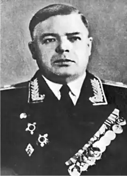 Poyarov continued to serve in his previous post until April 1946, then was appointed chief of the Military Department of the commission. After its disbandment he served as chief of staff of the 37th Guards Mechanized Division of the Leningrad Military District from November 1947. After completing the Special Course at the Voroshilov Higher Military Academy in 1950, he was appointed military adviser to an infantry division commander of the Hungarian People's Army. Returning to the Soviet Union, Poyarov took command of the Carpathian Military District's 97th Guards Rifle Division in September 1955, and was promoted to the rank of general-mayor on 27 August 1957.[4] In September 1958 he was promoted to serve as deputy commander for combat training and chief of the combat training department of the 13th Army headquarters and in September 1960 rose to first deputy commander of the army. Poyarov was transferred to the Civil Defense Forces, serving as chief of the Northwestern Operational Zone of Civil Defense from 4 February 1965. In February 1967 he was moved down to first deputy senior chief and chief of staff of the zone. While still on active duty, he died in Leningrad on 25 September of that year,[2] and was buried at the Bogoslovskoe Cemetery.[4]