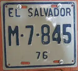 - ^ "License Plates of el Salvador". worldlicenseplates.com. Retrieved 27 July 2025.