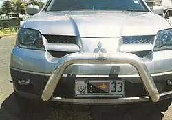 In about 1993, Papua New Guinea began using a letter system to denote the Province of registration. General issue type issued in the National Capital District (NCD), as denoted by the B prefix. Manufacturing variations exist. BAA-000 to BAK-000 were manufactured by Altona Industries and made of steel. BAL-000 onwards were made of aluminium. |