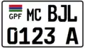 27x20 cm Black on White Gambian Flag as well as the text GPF on the top left corner of the license plate | |||