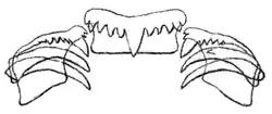 drawing of one row of teeth in the radula of Velutina velutina