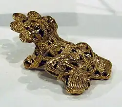 Gold and especially tumbaga artwork at Venado Beach represents some of the most superb examples of lost-wax casting from the time.[4] Frog forms in art are common in Panama, possibly representing fertility.[4] It is similar to that of the Veraguas region of Panama.[3]