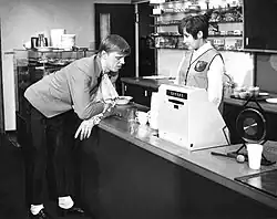Loiri's titular show, Vesku Show (1988–1991), was both written by and starred Loiri, alongside Simo Salminen, Hannele Lauri, Eija Vilpas, and Juha Muje.[35] Episodes ran approximately 45 minutes without advertisements and aired every four weeks.[82] The program was a direct continuation of Spede Show, in which Loiri participated during the early 1970s and again from 1984, after a ten-year hiatus. Several of Loiri's iconic characters from Spede Show, such as the singer Kusela and television announcer Tyyne, were carried over into Vesku Show. A new character introduced in the series was a big-toothed bartender known for the catchphrase "jummi jammia." The show garnered up to 1.6 million viewers at its peak.[83][84]