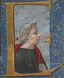 He was hired by a book merchant, or cartolaio, Michele Guarducci, in 1434. The shop bound and sold books, as well as writing materials such as paper and ink. This work brought him in contact with erudite Florentines, and he transitioned from a kind of manual laborer into a well-regarded procurer of rare texts.[1] When desired texts were obtained, he engaged scribes to make copies for his customer.[2]