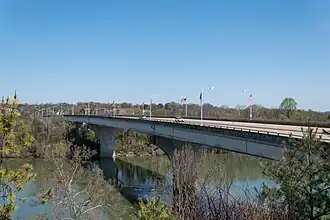 The Veterans Memorial Bridge is a steel girder bridge in Chattanooga, Tennessee. It was built in 1984 and has a main span of 420 feet (130 m). It carries Georgia Avenue across the Tennessee River, and Audubon Island, an island in the river on which McClellan Animal Sanctuary is located. It is one of four bridges that cross the Tennessee River at downtown Chattanooga.[1]