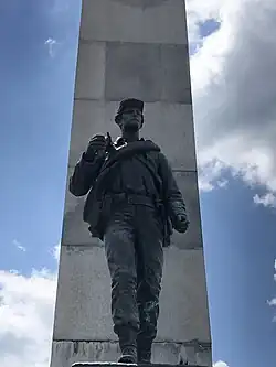 Veterans Park of Cambria County memorializes the approximately 5,500 soldiers from Cambria County, Pennsylvania who fought in the Revolutionary War, War of 1812, Mexican-American War, Civil War and Spanish-American War and is located in Ebensburg, Pennsylvania. The main feature of the park is a 63-foot (19.2 m) tall grey granite monument, which consists of an obelisk and towards the base facing east is a bronze Civil War "armed sentinel" manufactured by the Gorham Co. Foundry.[1] Around the monument are 22 plaques listing the 5,500 names of the soldiers.[2] However, this list of soldiers is not to be considered completely accurate. There were Cambria County soldiers that were not listed on this memorial due to one or more reasons. These reasons include: the entire family may have moved out of Cambria County before the memorial was built, or, the soldier may have joined a unit that was formed in another county.[2] A plaque just below the Armed Sentinel reads: "[e]rected to the memory of the soldiers and sailors from Cambria County, Pennsylvania who fought in defense of their country."[3]