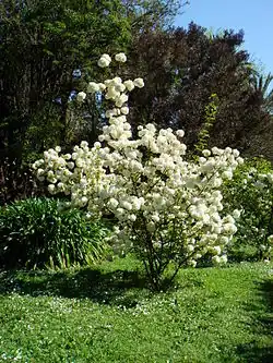 Viburnum macrocephalum (Chinese: 繡球莢蒾 "hydrangea viburnum", or 木繡球 "tree hydrangea"), common name Chinese snowball, is a species of flowering plant in the family Adoxaceae (formerly Caprifoliaceae), native to mainland China.[1] Its fertile form, Viburnum macrocephalum f. keteleeri (Chinese: 瓊花, qiong hua, "white jade flower"), is of great cultural significance in China.