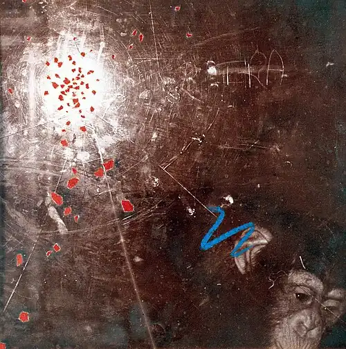 In preparation for this exhibition, Sloan rekindled his friendship with Ka Fue Lay,[7] who was a teenager when he settled in Craigavon in 1979 and now lives in Salisbury, England. Sloan made a video[8] in which Ka Fue Lay discusses his life in Vietnam, displays family photographs and fondly recalls his time in Craigavon. The exhibition also includes Sloan's black and white photographs of Craigavon from the late 1970s and early 1980s, contemporary images that he created by scratching, painting and bleaching photographic prints, and recent work including large colour photographs of Moyraverty.