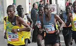 2. ^ Derara Hurisa crossed the finish line first, but was disqualified for wearing shoes with soles 1 cm (0.4 in) thicker than those that were allowed.[16]