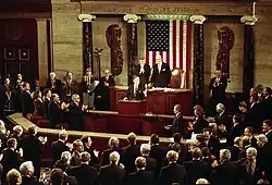 President George H. W. Bush addresses a joint session of Congress regarding the end of the war with Iraq.