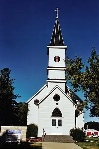 The Vikur Lutheran Church at Mountain is an historic Lutheran church building in Mountain, Pembina County, North Dakota. Built in 1885, it is the oldest Icelandic Lutheran church in the United States. The Gothic Revival wood-frame building was built in land donated in 1881 by the pastor Páll Thorláksson, who was influential in establishing the Icelandic American community in the area, and who died in 1882, before its construction.[2] Most of the wood used to build Vikur Lutheran Church at Mountain came from the land owned by Friðbjörn Björnsson, who emigrated from Iceland in 1873, leaving from the farm Baldursheimur in Möðruvallaklaustur Parish, Eyjafjarðarsysla, and homesteaded east of Mountain on Cart Creek in 1881.