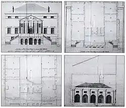 1.1 Giovanni Vettori, Elevation drawing of the "Main Façade" of the villa, with the elevation drawing of the main floor plan next to it (10 April 1784). Copies taken from the original of 1 October 1783. A.S.Pd., Notarial, Acts of Antonio Brusoni, b. 8342, n. 254, details of drawing no. 2/I and 2/II attached, between c. 155 and c. 156.1.2 Ground floor plan of the villa with the elevation drawing of the left barchessa next to it (10 April 1784; 1 March 1784). Copies taken from the original of 1 October 1783. A.S.Pd., Notarial, Acts of Antonio Brusoni, b. 8342, n. 254, details of drawing no. 2/III and 1/I attached, between c. 155 and c. 156.[2]