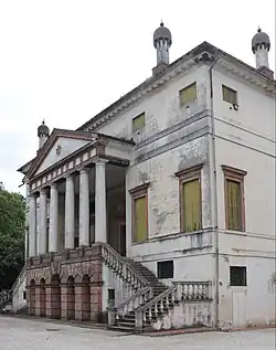 Although stylistically aligned with Palladian villas, the Villa cannot be definitively attributed to Palladio, as it lacks the key element that defines his work: the fusion of architecture and nature. The building makes no use of the canal surrounding the estate or the irregular shape of the land, both of which could have suggested a more dynamic orientation or a more complex floor plan. Additionally, the staircase does not create a connection with the landscape: the first ramp, with only a few steps, touches the ground, while the second, longer ramp is already part of the central projection, becoming one with the building.[3]
