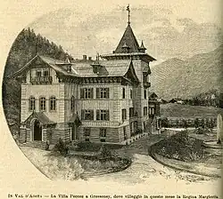 The villa, commissioned by barons Beck-Peccoz, was designed by German engineers and erected in 1888. Between 1889 and 1906, the barons hosted several members of the House of Savoy in this home, until these too, fascinated by the beauty of the Lys Valley, built a residence of their own there, the Savoy Castle.[1] The villa was named after Margherita of Savoy.[2]