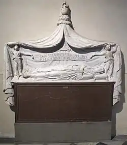 De' Botti died in 1361 wearing the habit of the Dominicans and on her deathbed she asked that the Passion be read out to her; she died when the words "He bowed His head and gave up the Ghost" were read out.[2] Her remains were taken to Santa Maria Novella but the priests were unable to inter her for a month due to the constant crowd of mourners.[1][3] Her bereaved husband often said that when he felt discouraged or depressed he would go to the room that his late wife died in for solace.
