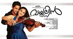 Violin is a 2011 Malayalam language musical romance film directed by Sibi Malayil. It stars Asif Ali and Nithya Menon in the lead roles, and Vijayaraghavan, Nedumudi Venu, Sreejith Ravi, Chembil Ashokan, Lakshmy Ramakrishnan and Reena Basheer in other major roles. The film is about two youngsters who are brought together by their fondness to music. A musical romance film by genre, it features music composed by Bijibal and a song composed by Bollywood composer Anand Raj Anand. Rafeeq Ahmed writes the lyrics while Manoj Pillai is the cinematographer. Sakhi Thomas was the costume designer for this movie. Having filmed the major parts from Fort Kochi, the film was released on 1 July 2011.[1][2] Violin Dubbed to Telugu As Dilse in 2012.