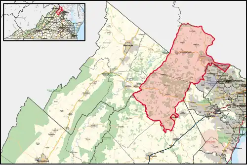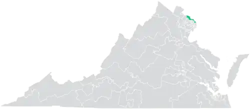The district overlaps with Virginia's 8th and 10th congressional districts, and with the 34th, 47th, 48th, 49th, and 86th districts of the Virginia House of Delegates.[4] It lies directly across the river from Maryland and the District of Columbia.[1]