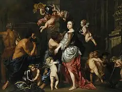 Some scholars think that Vulcan might be the unknown god who impregnated goddesses Fortuna Primigenia at Praeneste and Feronia at Anxur. In this case, he would be the father of Jupiter.[34] This view, however, is in conflict with that which links the goddess to Jupiter, as his daughter (puer Jovis) and his mother too, as primigenia, meaning "primordial".