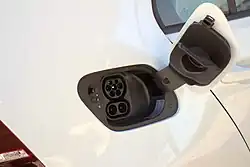 The 2014–2016 model year e-Golf has a traction motor (designed EEM 85) and single-speed gearbox (EQ 270)[36] with an output of 85 kW (114 hp) / 270 N⋅m (200 lbf⋅ft) in "Normal" mode; using "Eco" and "Eco+" mode reduces power / torque output to 70 kW (94 hp) / 220 N⋅m (162 lb⋅ft) and 54 kW (73 hp) / 175 N⋅m (129 lb⋅ft), respectively; both Eco and Eco+ disable the air conditioning system.[38][42][43] In addition, four different levels of regenerative braking can be selected.[37]: 14 The standard on-board AC charger has a maximum input power rating of 3.6 kW; as an option, DC fast charging using a Combined Charging System (CCS) connector is available, accepting DC power at a maximum rate of 40 kW.[37]: 27–28 The DC fast charging option also upgrades the on-board AC charger to 7.2 kW.[44]